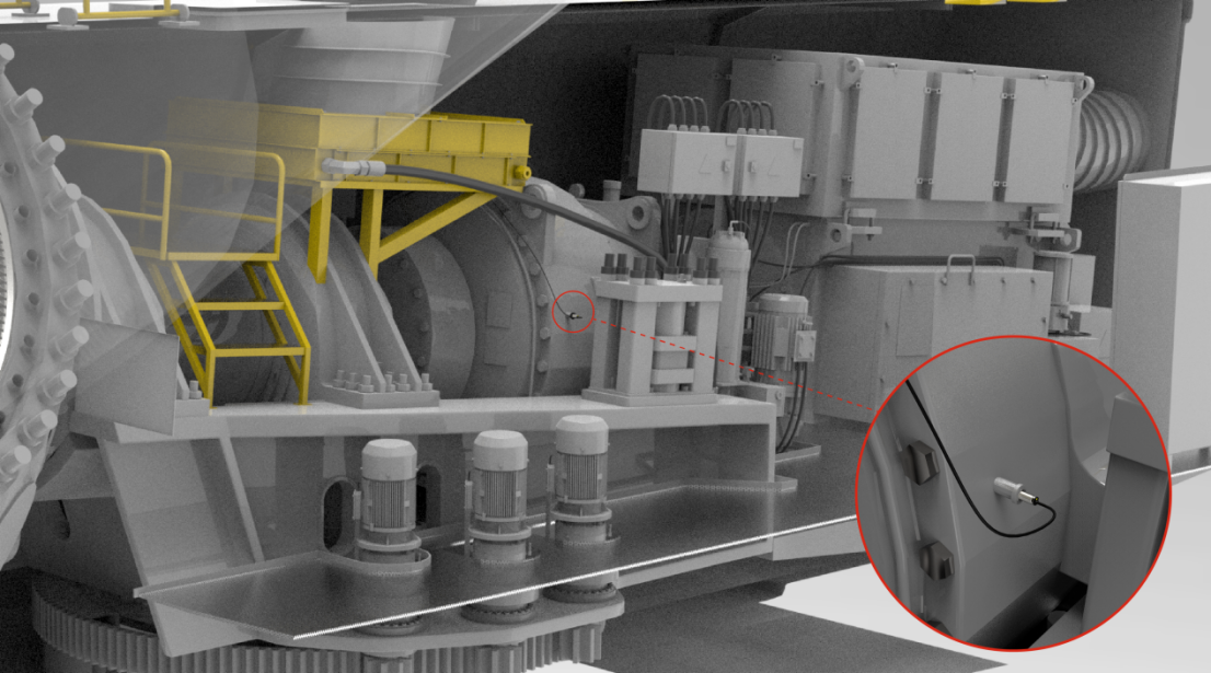 主軸前端(慢軸)安裝的LR18XG電感式轉(zhuǎn)速傳感器實時監(jiān)測轉(zhuǎn)子轉(zhuǎn)速,為傳動系統(tǒng)或聯(lián)軸器故障診斷提供關(guān)鍵數(shù)據(jù)。